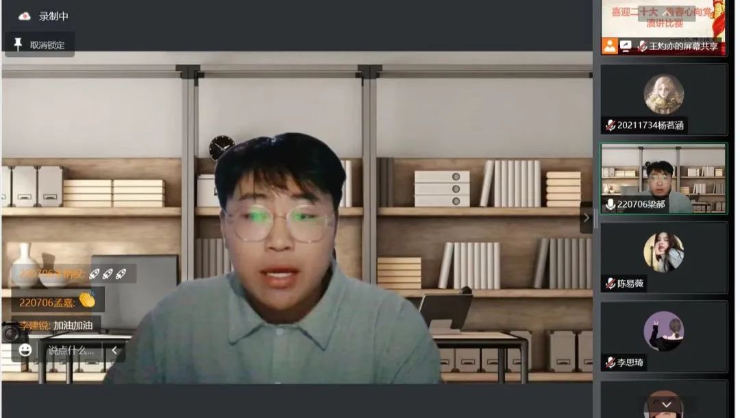 新闻网讯(通讯员 马静了营造活跃和谐的学院文化氛围,积极推动我院精神文明建设,展现新生们的良好风貌,厚植爱国主义情怀,我院于9月12日举办“喜迎二十大·青春心向党”演讲比赛,本次比赛采取“云演讲”形式,2022届全体同学参加了此次比赛。