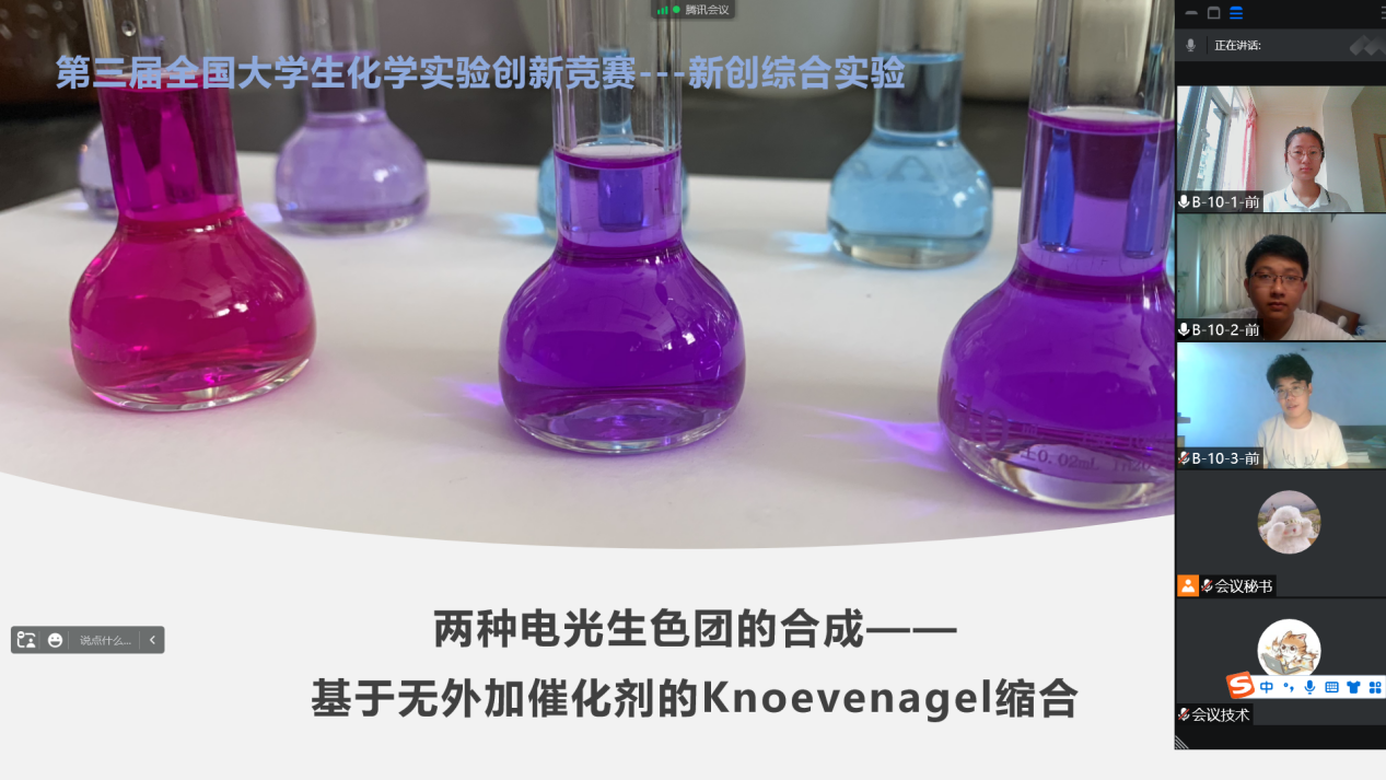7月31日,第三届全国大学生化学实验创新设计大赛——微瑞杯东北赛区决赛落下帷幕,我校共有三支队伍参赛,由我院李明老师指导,王梓涵、白骞、单振华同学完成的参赛作品《两种电光生色团的合成-基于无外加催化剂的Knoevenagel缩合》获三支参赛队伍最好成绩,荣获东北赛区二等奖。