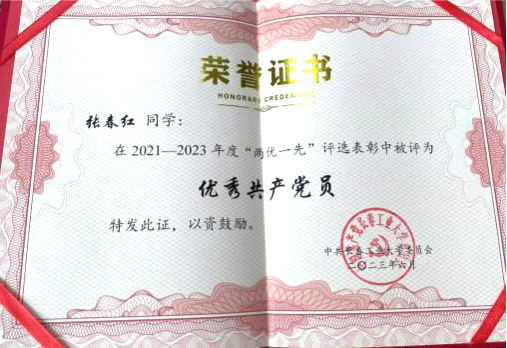 心有所信,方能行远。共产党员为党的事业而奋斗,不惜流血牺牲,靠的就是一种信念,为的就是一种理想。在思想上,张春红同志认真学习贯彻习近平新时代中国特色社会主义思想和党的二十大精神,深刻领悟“两个确立”的决定性意义,增强“四个意识”、坚定“四个自信”、做到“两个维护”,以扎实行动奋力答好“教育强国,高校研究生何为”时代课题。她在担任伟德国际victor1946研究生党支部副书记以来,做好党支部的宣传与组织工作,深入学习贯彻习近平新时代中国特色社会主义思想和党的二十大精神,理想信念坚定,她主持“深入学习党的二十大报告”主题党日活动等各类党内活动40余项,同时负责e支部的维护工作,在e支部累计发表新闻50余篇,所在支部年度考核均为优秀,获评校“优秀共产党员”荣誉称号。