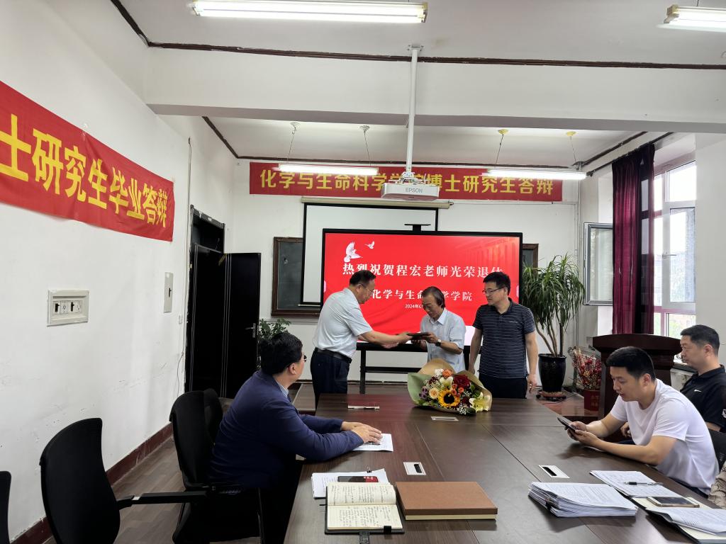 最后生物工程专业支部书记夏艳和系主任李奚分别代表党组织和生物工程专业对程宏老师表示了由衷的敬意,感谢其在职期间的辛勤耕耘和无私奉献。王哲院长代表学院感谢程宏老师将青春和智慧留在学院,为学校建设和为学院发展作出的重要贡献。希望程老师在退休后,继续承担工大精神的传播者,工大故事的宣传员,为学校事业发展增添正能量,再做新贡献!