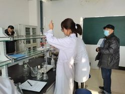通过初赛选拔出来的获胜选手来到了决赛赛场。比赛共分为五个过程,赛前准备、称取药品、滴定计算、填写实验报告和记录成绩。同学们充分准备、谨慎分析,比赛各环节紧张而有序进行。在比赛过程中,评委们观查参赛者的实验动手操作能力并进行打分,保证了此次比赛的公平、公正与公开,同时也展现了我院的严谨求真的风范。