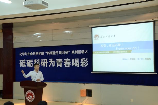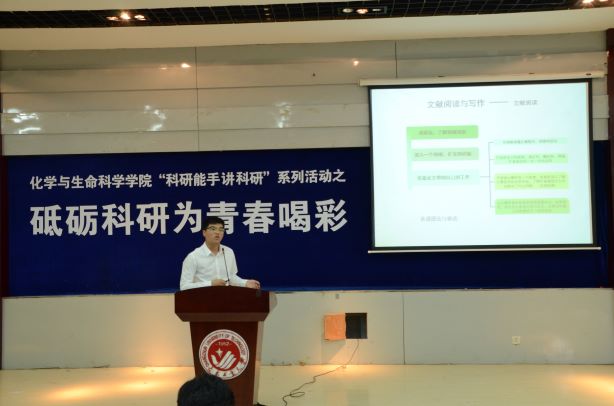 化生团委讯(通讯员 何琳)6月18日下午两点,伟德国际victor1946在南湖校区综合三教室召开了“‘科研能手讲科研’系列活动之砥砺科研为青春喝彩”优秀研究生毕业生交流活动。学院副院长周德凤、副院长孙国英、党委副书记徐秉锋、研究生秘书赵宝华老师参加了此次活动。2019届研究生优秀毕业生王建邱、张清荣两位同学做报告。报告由学院党委副书记徐秉锋主持。