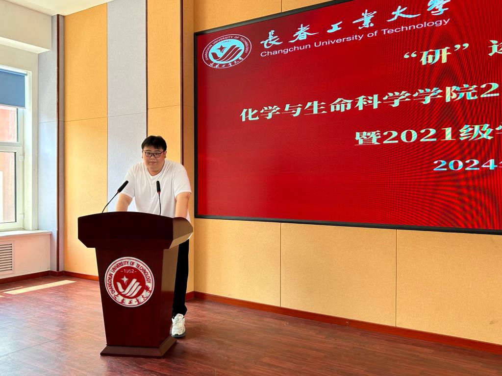 随后,获奖同学代表师鑫源上台发言分享考研经验。他从考研的必要性、如何选择院校、如何正确备考以及复试的准备工作四个方面给21级同学做出了详细的建议。并且对学院的培养、老师的帮助及同学的关怀表示了深深的感谢,最后他真诚地祝愿21级全体同学在考研路上一路顺利。