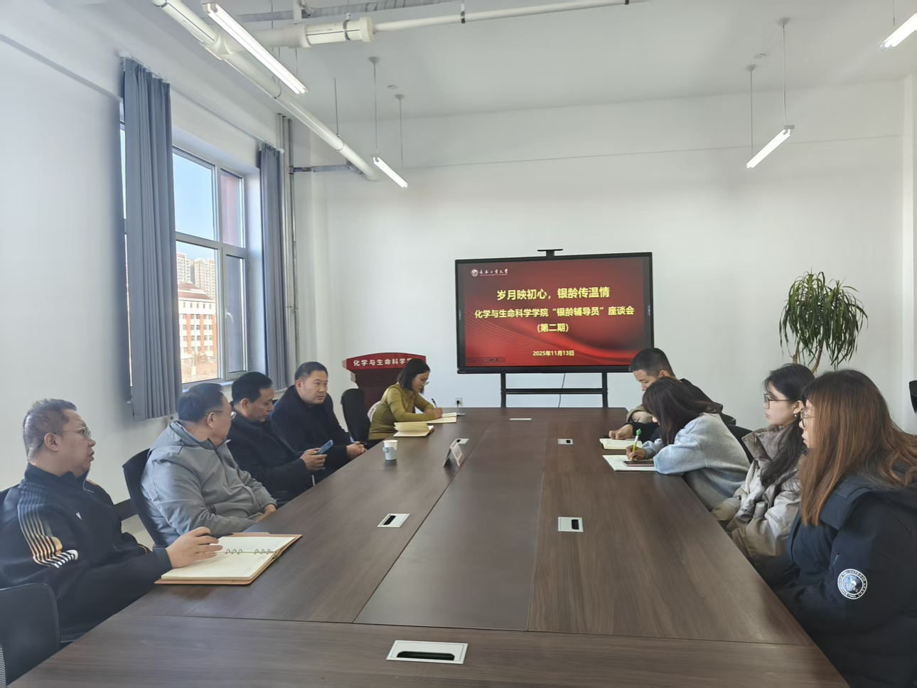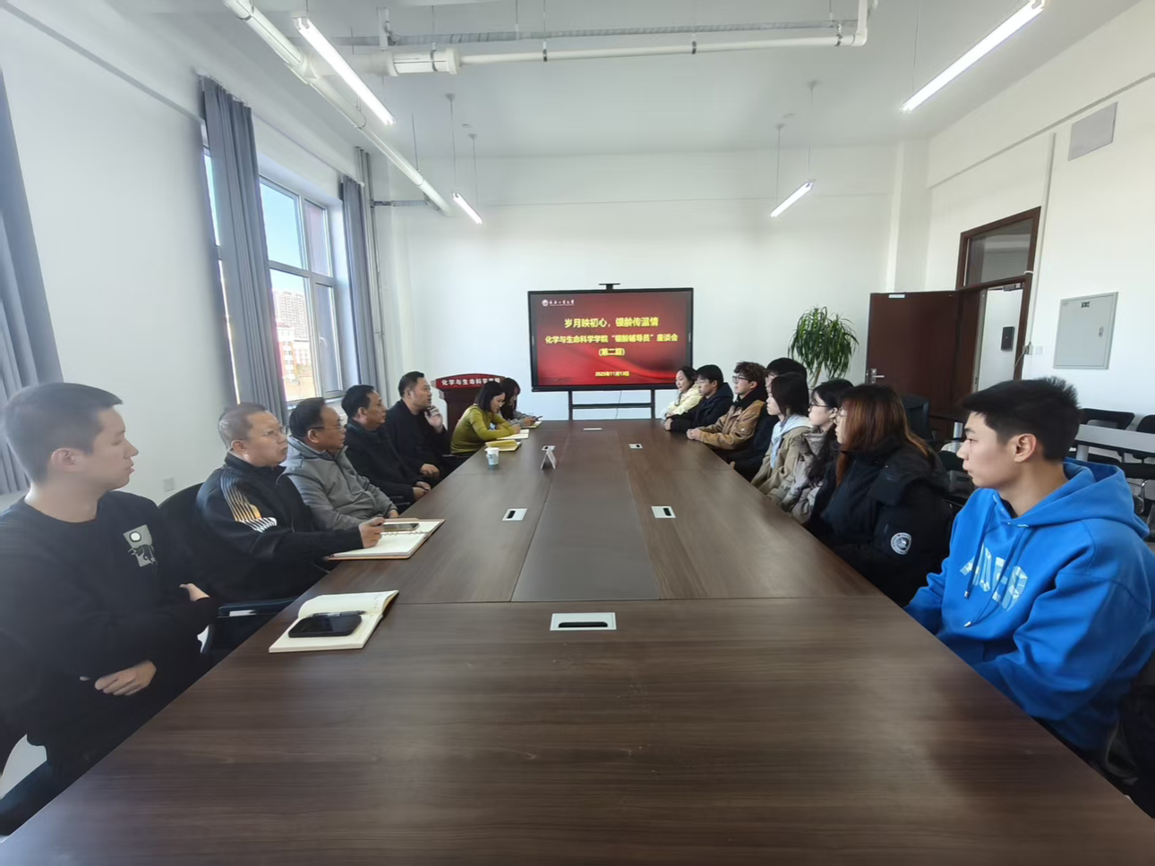 本网讯(通讯员:胡罗彬、孙鹏博)为充分发挥“银龄辅导员”的经验优势与榜样力量,凝聚立德树人合力,11月13日中午,学院“岁月映初心,银龄传温情”“银龄辅导员”座谈会于化学化工楼A306会议室温情启幕。学院特邀张继跃老师莅临现场,以亲身经历为引,与师生们共话教育初心,分享成长感悟,传递殷切期许。