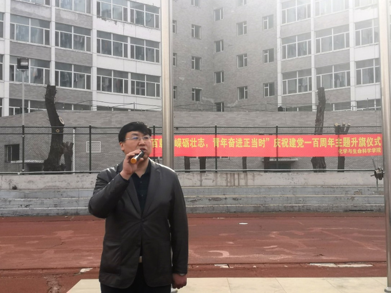 本次升旗仪式的护旗手由崔劲松、孙睿晗、温馨、郭梓腾担任,由梁正基主持此次升旗仪式。伴随全体师生庄严的注目礼,四名护旗手护送国旗前进,《义勇军进行曲》骤然响起,全体师生庄严肃立,向国旗行注目礼。而后韩晶鹏做国旗下演讲,他表示作为新时代青年大学生,我们当学着前辈的样子,勇肩使命,紧接着郭巾玲宣读主题倡议书,倡议同学们学党史感党恩,坚决听党话跟党走,践行初心使命、赓续崭新征程。随后由徐秉锋副书记致辞,他向我们讲述作为大学生我们要走在学党史第一线,增强“四个意识”,坚定“四个自信”,做到“两个维护”,以高度的政治自觉投身到党史学习教育中来。活动最后徐秉锋老师向所有同学送上祝福,希望同学们可以脚踏实地,认真学习,为实现自己的人生价值而不懈奋斗。