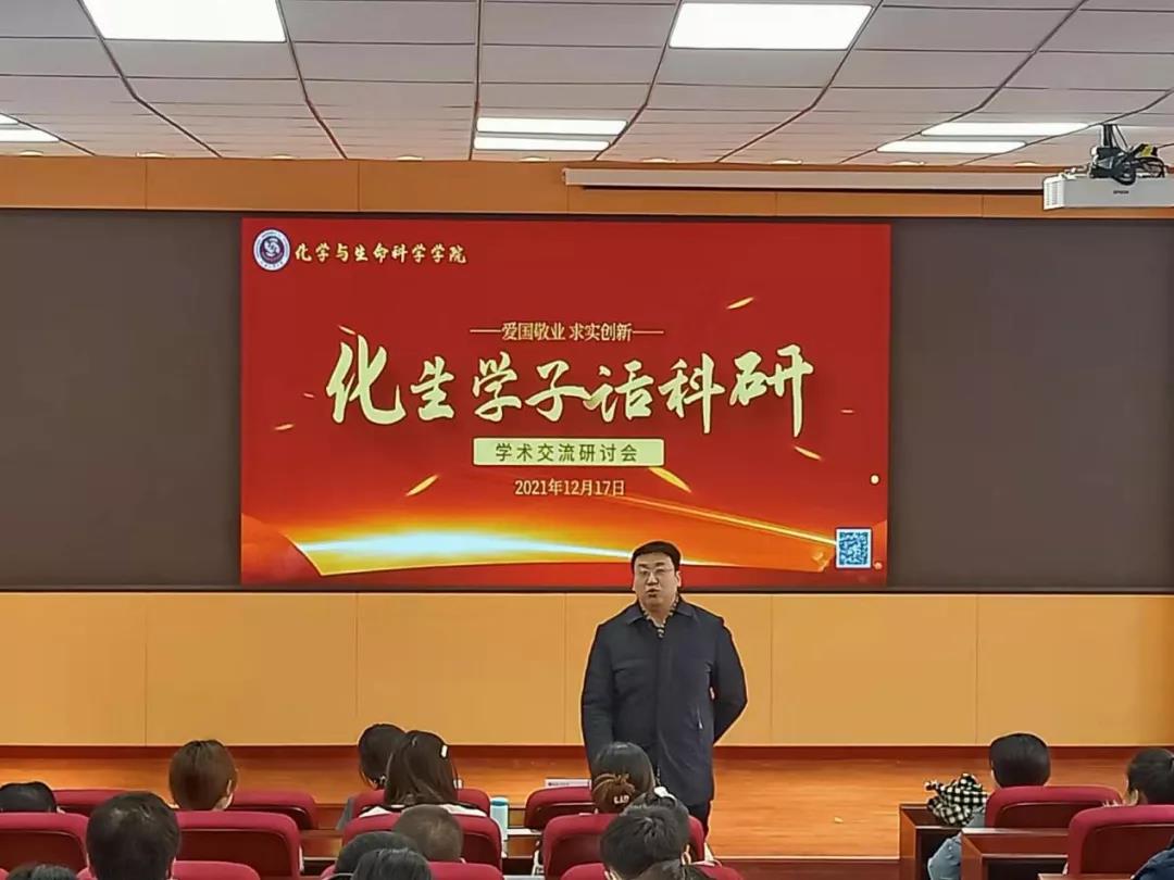 2021年12月17日,我院在南湖校区综合楼举办了第一届“化生学子话科研”学术交流研讨会,学院党委副书记徐秉锋、学院副院长孙国英、学院全体研究生参加了此次活动。