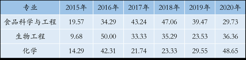 表1 各专业历年考研率(%)