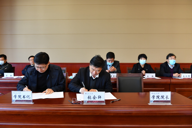 张会轩与我院党委书记于洪签订了2021届毕业就业目标责任书。