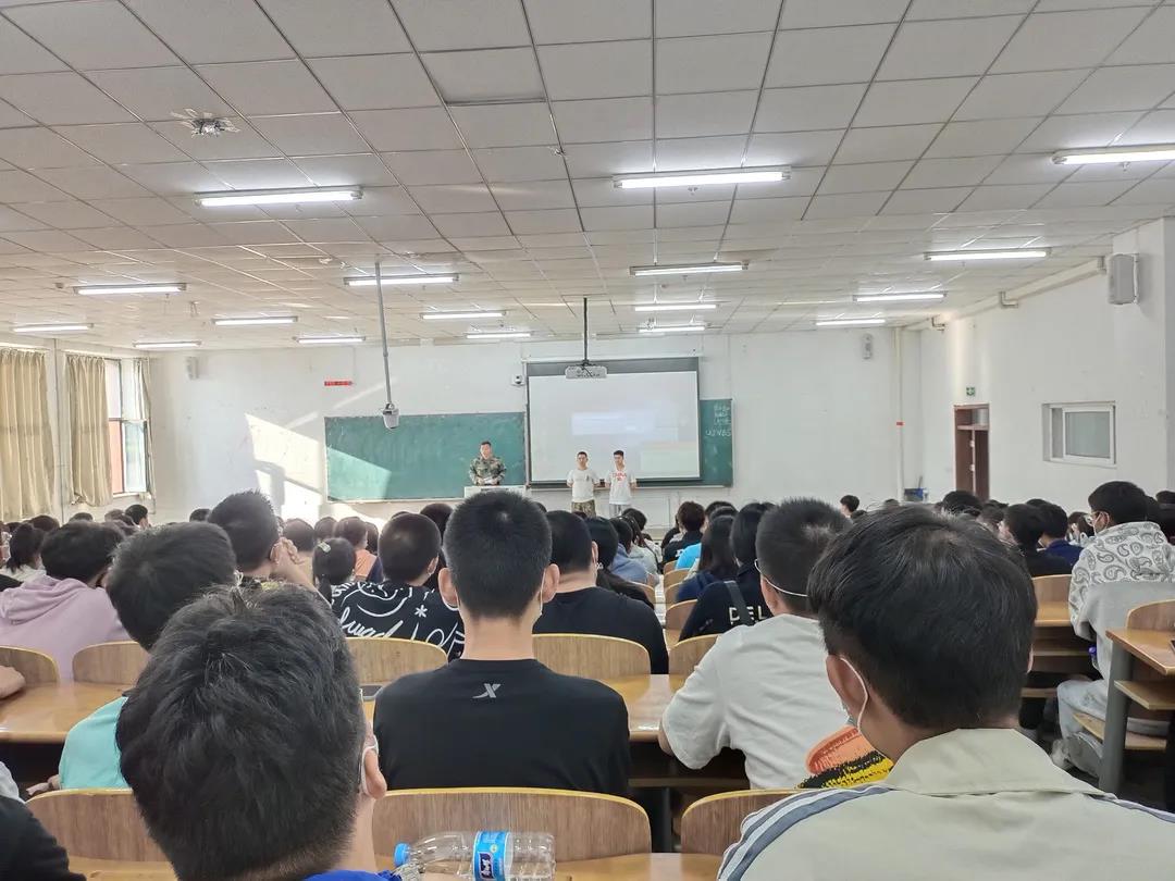 新闻网讯(通讯员 李代芸)为提高同学们的政治觉悟,激发同学们的爱国热情,发扬革命精神,培养艰苦奋斗、刻苦耐劳的坚强毅力和集体主义精神,我院于9月6日开始了为期21天的新生军训。由于近期疫情原因,2021级新生军训计划进行了初步调整,改由学校退役大学生承训,并于9月10日在北湖西区西阶102召开了新生教官见面大会。新生教官付骐羽、常成海出席了此次会议,2021级新生辅导员张鹏主持大会并进行讲话,2021级全体同学参加了此次会议。