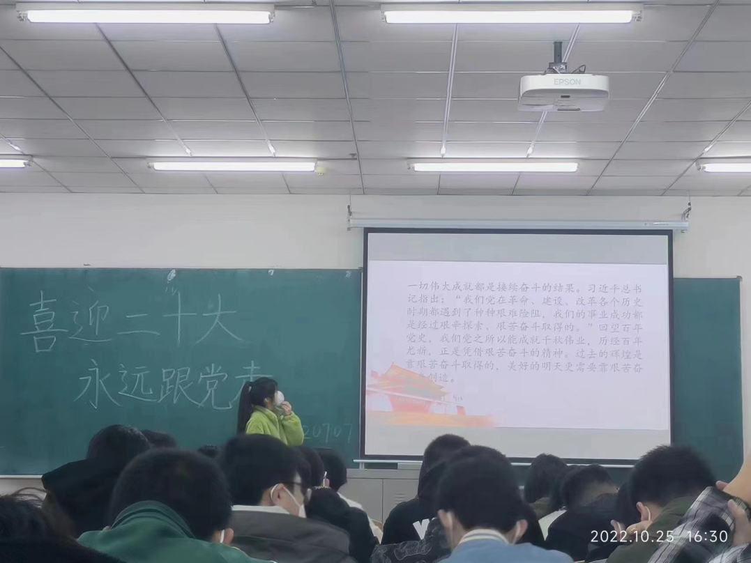 新闻网讯(通讯员 由萌 马静)为深刻领会党的二十大的精神实质,进一步提高认识,统一思想,10月24日,我院组织党的二十大专题学习会,2021级和2022级全体学生参加本次学习活动。