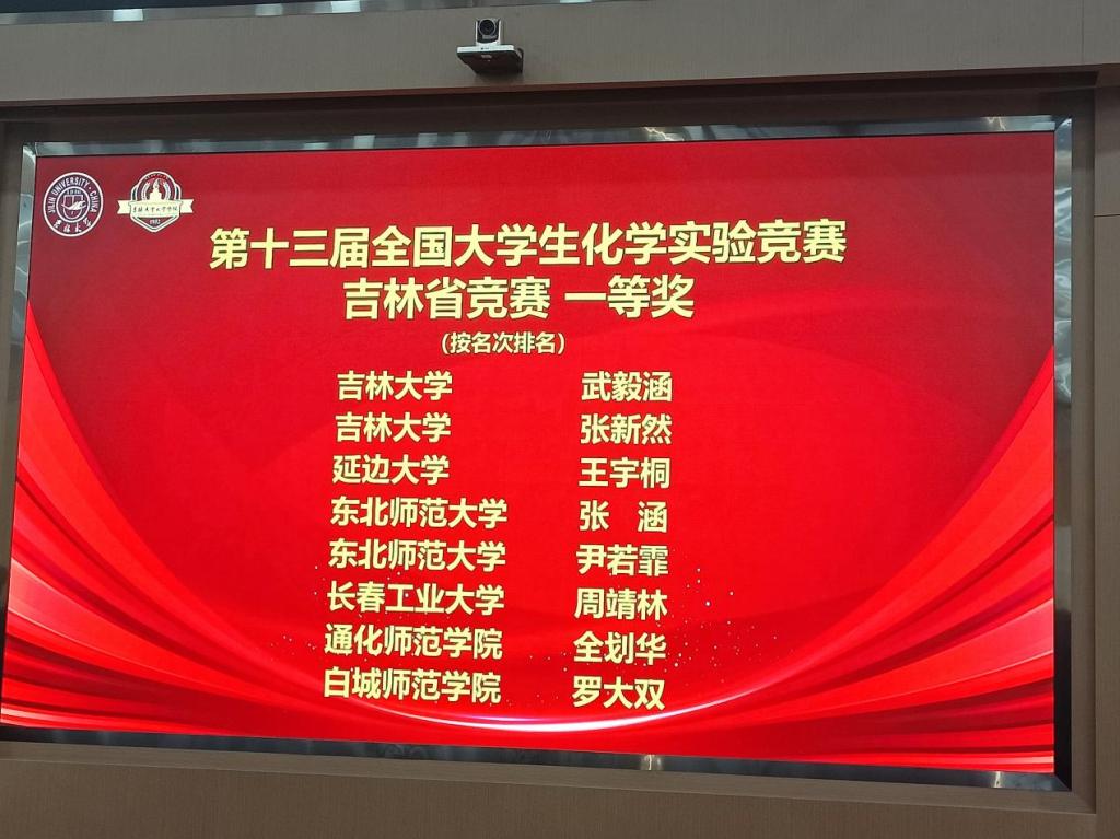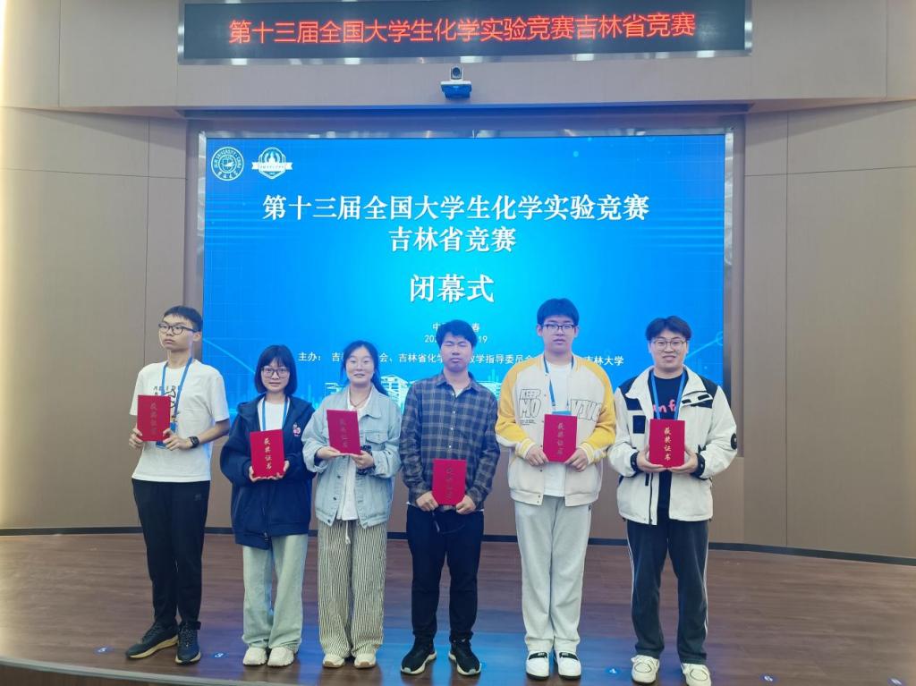 本网讯(通讯员:关爽)近日,第十三届全国大学生化学实验竞赛吉林省竞赛在吉林大学举办。化学实验竞赛包括初赛和复赛两个环节。其中,初赛为化学实验知识竞赛;初赛优胜者进入复赛环节,复赛为化学实验操作竞赛。省内包括东北师范大学、延边大学、东北电力大学等多所高校参赛。我校伟德国际victor1946教师关爽、武原琪指导我校6名同学参加比赛,全部获奖,成绩优异。其中,22级周靖林同学获得一等奖,22级李威萱,韩旭荣,张伟益,梁郝四名同学获得二等奖,21级崔佳雪同学获得三等奖。获得一等奖的周靖林同学将代表吉林省参加第十三届全国大学生化学实验竞赛(省赛选拔5名同学参加国赛)。