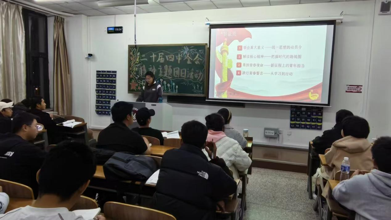 本网讯(通讯员:王嫚嫚)为深入学习贯彻党的二十届四中全会精神,引导青年学生坚定理想信念、增强使命担当,近日,我院集中开展"学习党的二十届四中全会精神"主题团课活动。