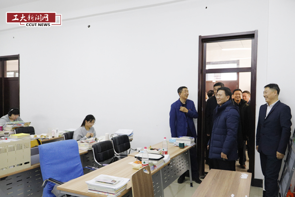 李景浩在学校领导的陪同下,视察了南湖校区和北湖校区,参观了学校红色文化主题教育践习中心,实地调研了经济管理学院。