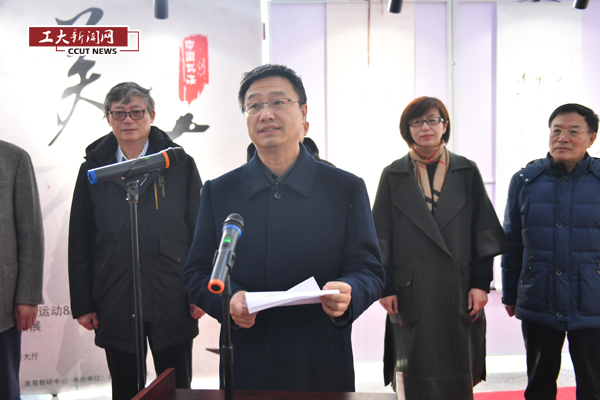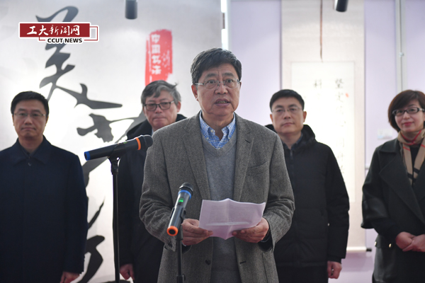 李新在主持开幕式中强调,学校美育工作开展以来,工作成果突出,产生了较好的社会影响。“美蕴工大”书法作品展,创造性地将中华优秀传统文化教育、爱国主义教育、革命文化教育熔于一炉,是美育教育一次创新和探索。希望通过书法作品展,进一步激发广大师生协同推进学校美育教育的热情,在书法艺术的美蕴中,重温热血之志、家国之情,在遒劲跌宕的笔法中,鼓舞情志、涤荡心灵。
