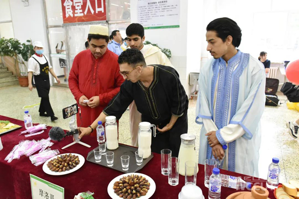 现场人头攒动、热闹非凡,学校领导、相关部门、学院负责人和各餐饮公司经理共同切下象征美食文化节开幕的蛋糕。活动中,各承办餐饮公司的厨师们充分展示着自己的拿手绝活,庆建党百年、绿水青山等主题精美雕刻亮相现场,有深受师生喜欢的可乐鸡块、拔丝白果、橙香薯条、土司山药,有独具创意的孔雀开屏、节节高升、花开富贵、吉祥富贵虾,有地方特色的陕西凉皮、川味麻辣香锅、武汉热干面、粤菜蜂巢水蝉,有样式新颖蓝莓慕斯、海苔饭团、寿司、现烤面包等风味面点,还有异域风情土库曼斯坦的馕、孟加拉国的咖喱鸡腿饭、摩洛哥的枣夹核桃、哈萨克斯坦的风味炒饭,大家围绕着琳琅满目、香飘四溢的特色美食尽情的选取,欢快的气氛弥漫了整个校园。