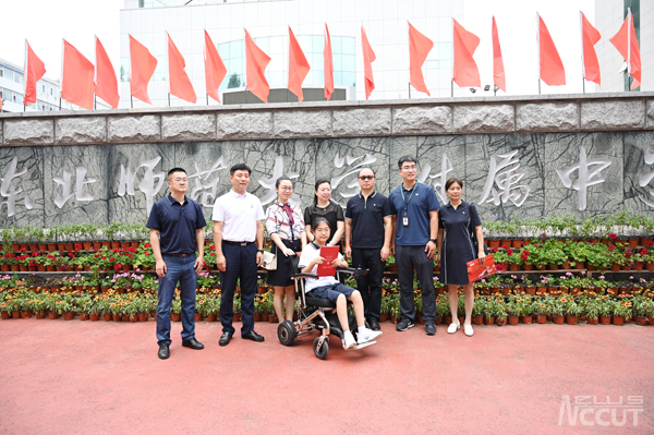 赵桐同学由于身体原因,在学习生活中克服了巨大困难,今年以优异成绩考取我校会计专业,其刻苦钻研、勇攀高峰的学习精神值得在校同学学习。为鼓励赵桐同学进入大学校园后继续努力学习,体现对2022级新生的关注关怀关心,学校专门组建了由bevictor伟德国际1946招生办公室主任杜娟带队,学生处副处长肖永辉及校党委宣传部新闻信息科科长张亮亮共同参加的“爱心通知书”派送团队,来到东北师范大学附属中学自由校区,将录取通知书送到赵桐同学手中。赵桐同学及其父母,东北师范大学附属中学校长邵志豪,赵桐所在年级主任王艳飞,校办主任张继辉,赵桐所在班级班主任田雪玲一起接待了派送团队一行。