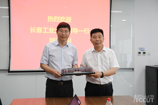 随后,孙长智代表学校向刘忠范院士赠送了建校70周年校庆纪念品--南湖校区主楼楼模。