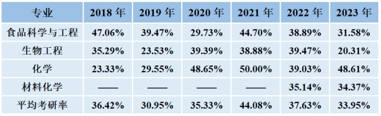 表1 各专业历年考研率(%)